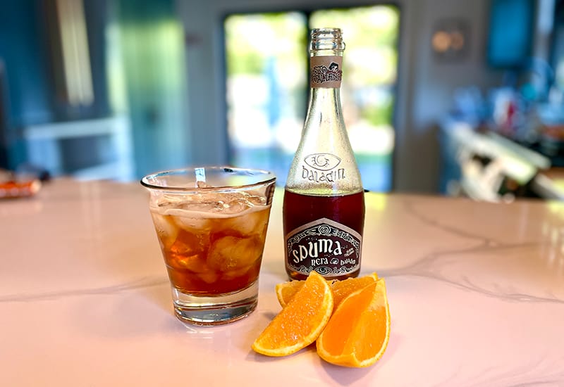 Baladin sought to reverse this trend with Spuma Nera, harking back to original recipes to create a lightly carbonated, dark-hued orange soda. Mildly sweet with a satisfying bitter aftertaste, it's a delightful alternative that leans more towards an intriguing aperitif than a sugary soda.