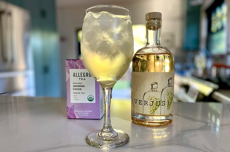This mocktail is a delightful blend of sweet floral notes with a slightly bitter base from the Jasmine Tea, and complemented by the tangy Verjus. Add some bubbles, and you'll have a spritz that might just convince you that white wine was in fact the main ingredient all along.