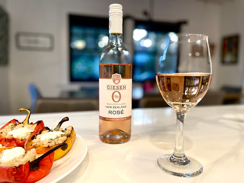 How Giesen describes their Rosé: This dealcoholized New Zealand Rosé boasts delicious stone fruit aromas of white peach, apple, and fresh strawberries. Those apple and stone fruit notes linger on the palate alongside crisp cranberry flavors and a lively, refreshingly dry texture. A light and freshing addition to any dinner table or social gathering!