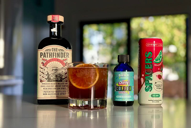 I enjoyed Spacers’ Cherry Lime straight from the can, and I can see the real benefit of having this as a go-to option when you’re trying to “space out” your night. Where I was more wowed, though, was using Cherry Lime as a mixer. I only had time to knock up one cocktail, but 1.5 oz of The Pathfinder with a generous shake or two of All The Bitter’s Cherry Coffee Bitters made for a fabulous start.