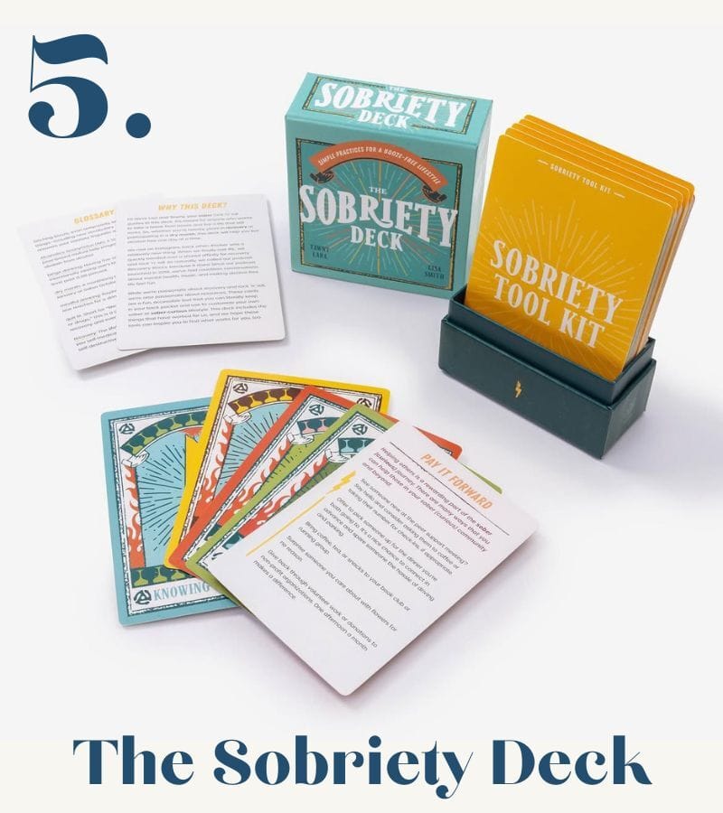 This stocking-stuffer-sized box contains 50 cards split into five categories — Sobriety Toolkit, Knowing Ourselves, Relationships, Growing Up, and Experiencing Joy.